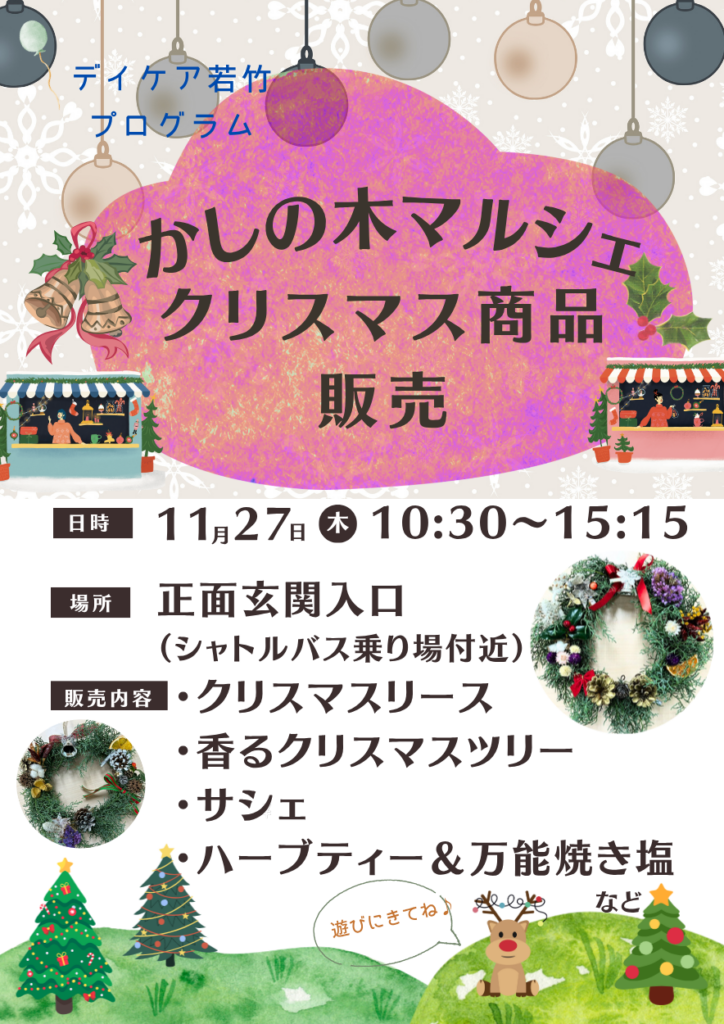当院ではこの度、かしのきマルシェ(クリスマスマルシェ)を実施いたします。